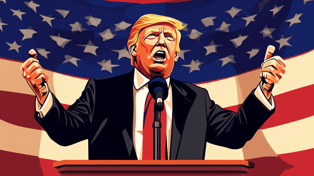 Discuss how rhetoric shapes public opinion and political landscapes. Analyze how Trump's speaking style, choice of words, and repetition of certain phrases have influenced political discourse.
