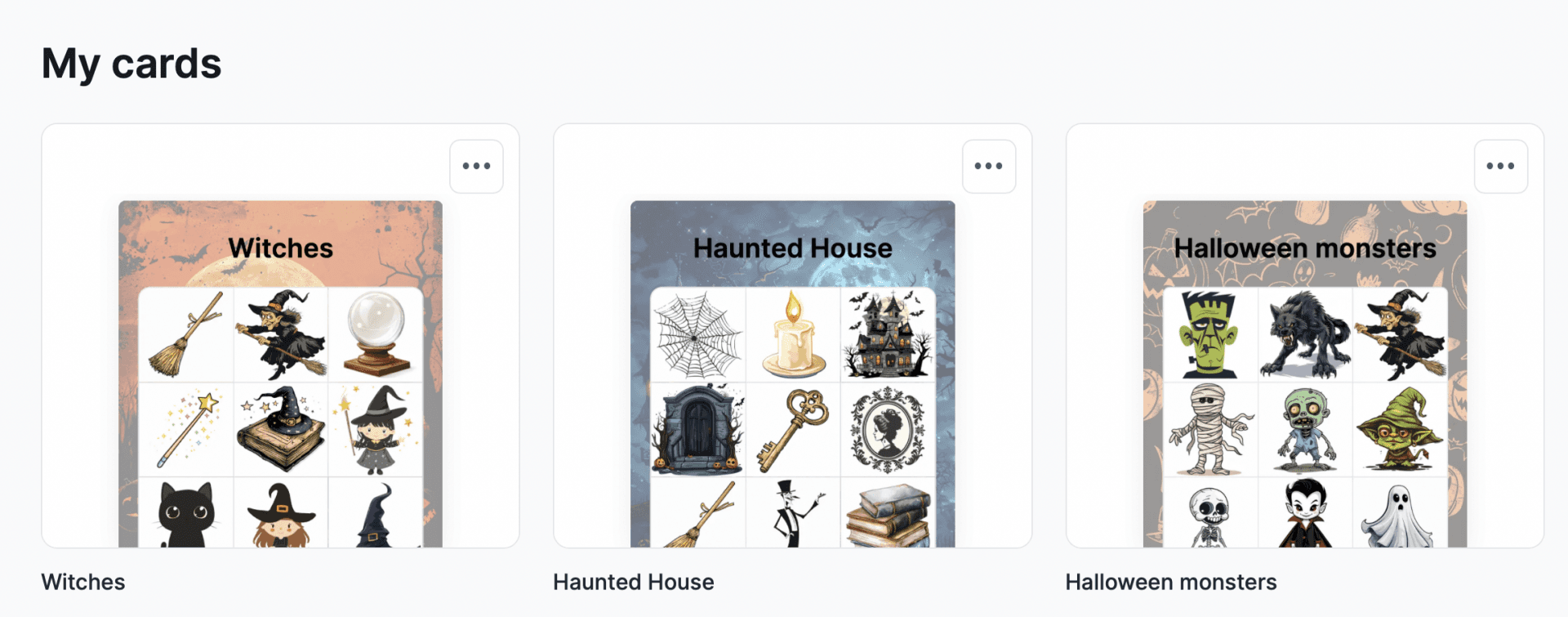 Here, you can admire your collection of bingo cards, organize them, or even get inspired to create new ones. It’s like your own personal bingo card gallery, showcasing all the fun and creativity you've poured into each card. Enjoy exploring and revisiting your designs anytime you like!